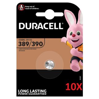 10x Duracell Uhrenbatterie D389 390 1,55V 80mAh AgO Blister
