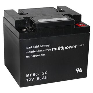1x Multipower Blei-Akku MP50-12C Pb 12V 50Ah Zyklenfest M6 Innengewinde